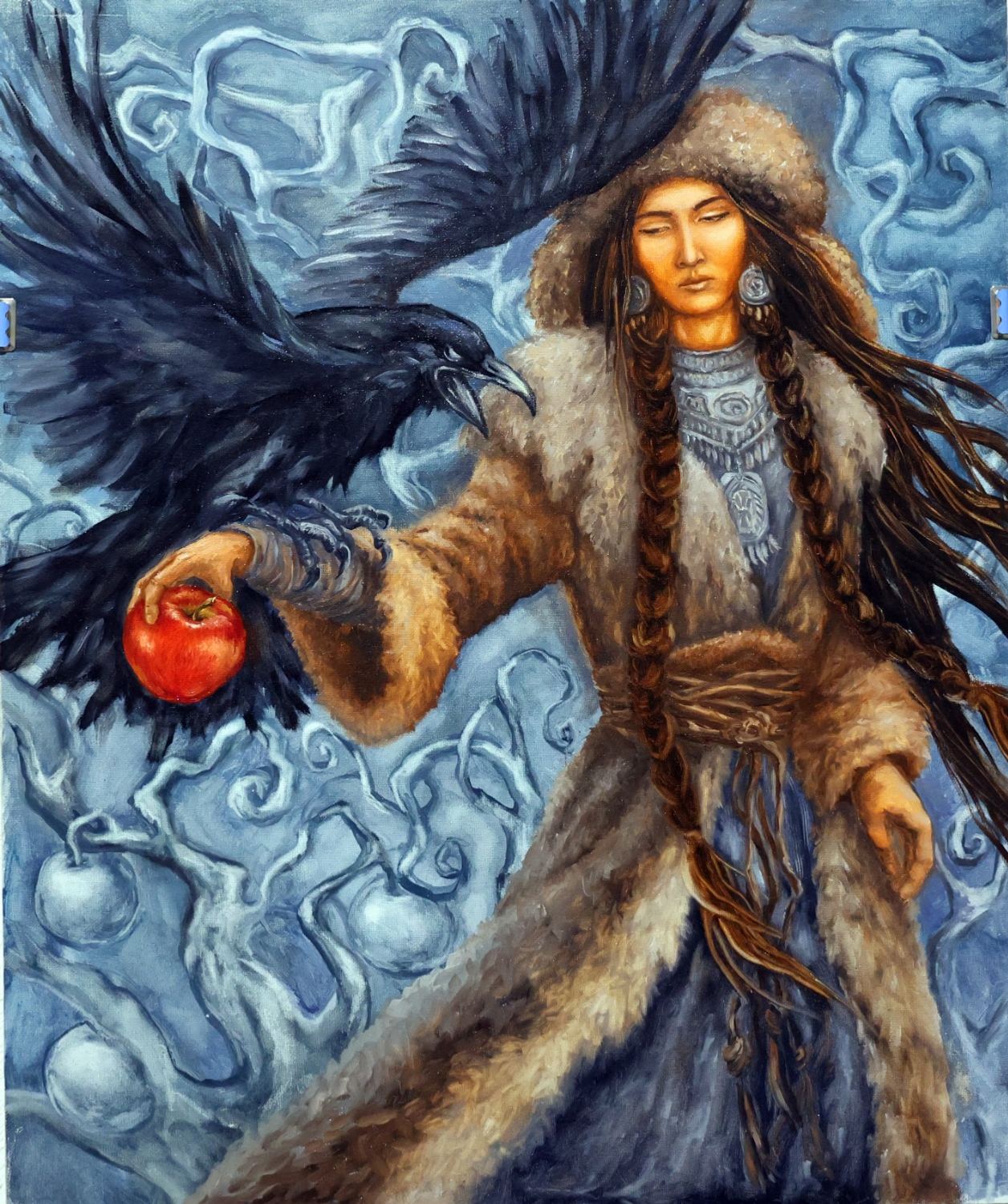 Художница не копирует эпос. Она переживает его. Каждый штрих — как отголосок древнего сказа, пережитого сердцем.